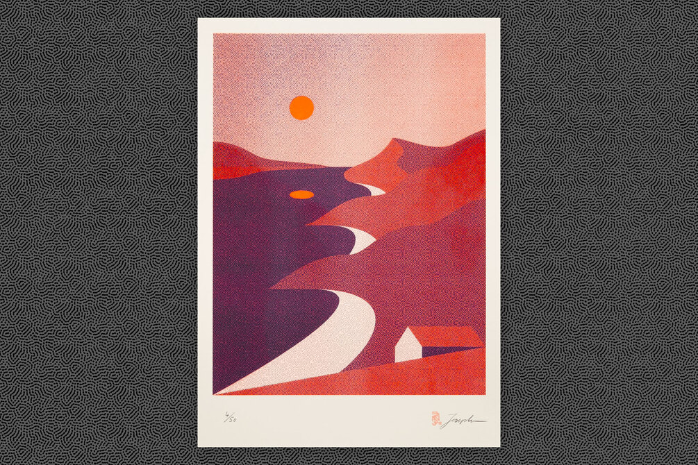A bit of longing and a lot of desire to create were our main motivations for producing a series of landscape motifs as a first edition for our new and tiny webshop. We used Stochaster to create these beautiful turning patterns that give these flat illustrations a unique, minimalist look and had the riso prints done by our friends at Herr und Frau Rio.